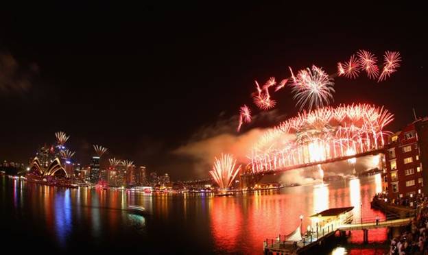 Amritsar. Spectacular fireworks burst over Sydney Harbour to ring in the New